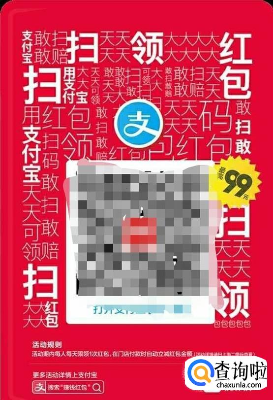 然后找到支付宝的红包码,在各大商家都可以看到,自己也可以生成红包码。除了自己的红包码以外都可以扫码免费领红包。