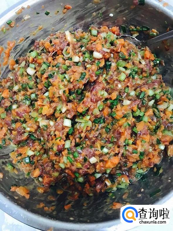 拌匀,因为配料较多所以搅拌的时候要耐心一点,一定要把味道搅拌均匀。拌完之后就可以包我们既美味又皮薄馅大的胡萝卜牛肉馅饺子了。