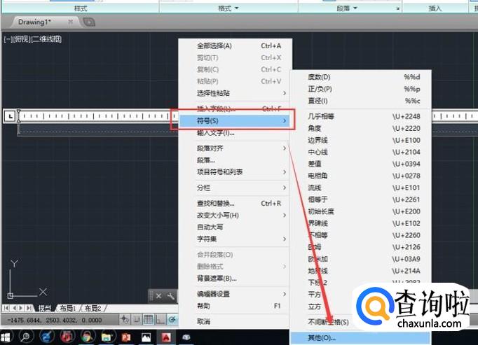 点击鼠标右键,在弹出的界面中分别选择”符号“,”其他“。