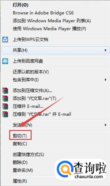 选择文件夹,鼠标右击剪切(复制也可以)
