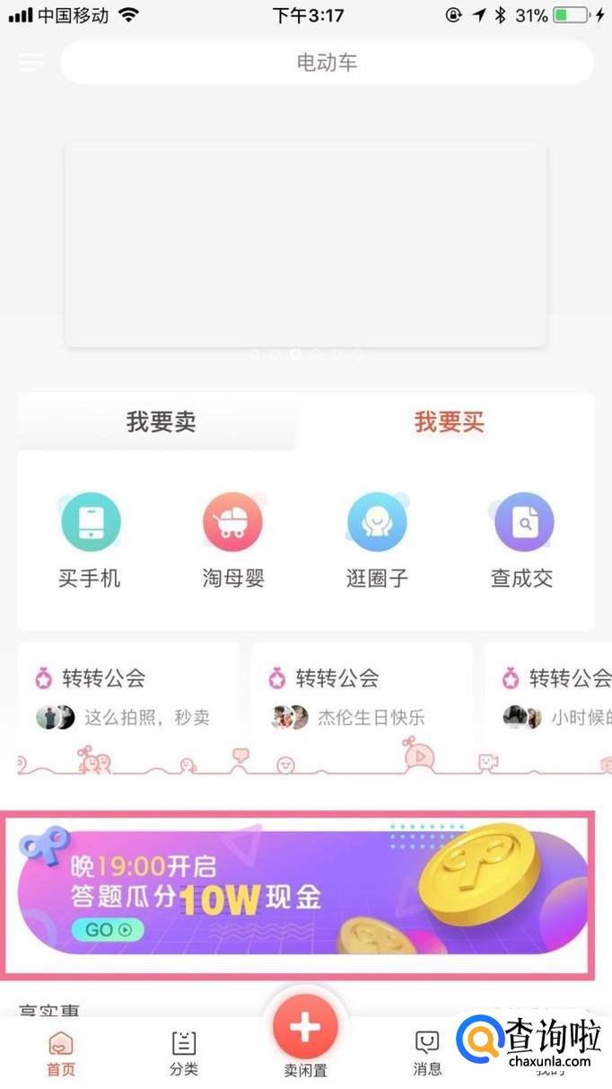 然后点击屏幕下方的答题瓜分10w现金的活动,如下图所示。
