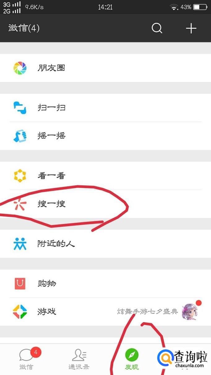 首先,大家在桌面上找到“微信”并打开,并登录好自己的账号,点击到“发现”的页面,再点击“搜一搜”