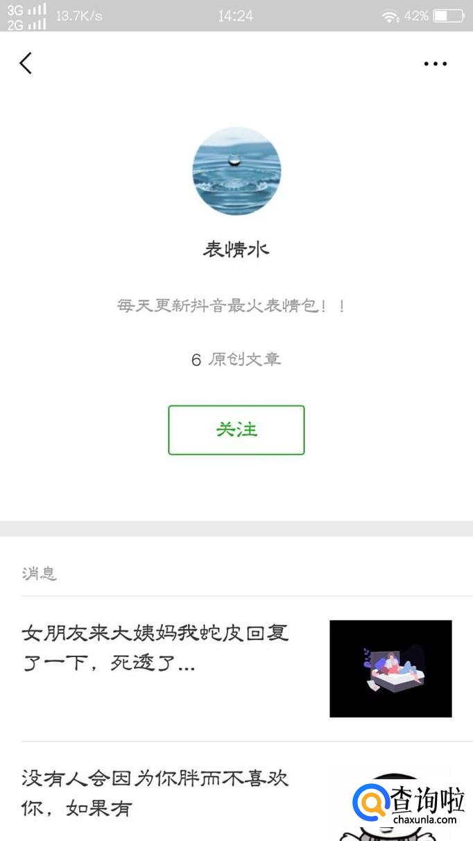 接下来,大家就搜索“表情水”这个公众号,并点击关注