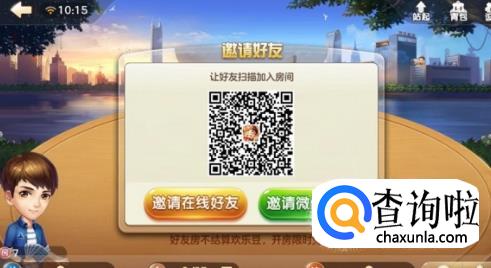 游戏房间创建好后,我们可以点击“邀请好友”按钮邀请好友来该房间玩,也可以让好友扫描屏幕上的二维码,直接进入房间。此处以“邀请在线好友”为例,选择“邀请在线好友”按钮。