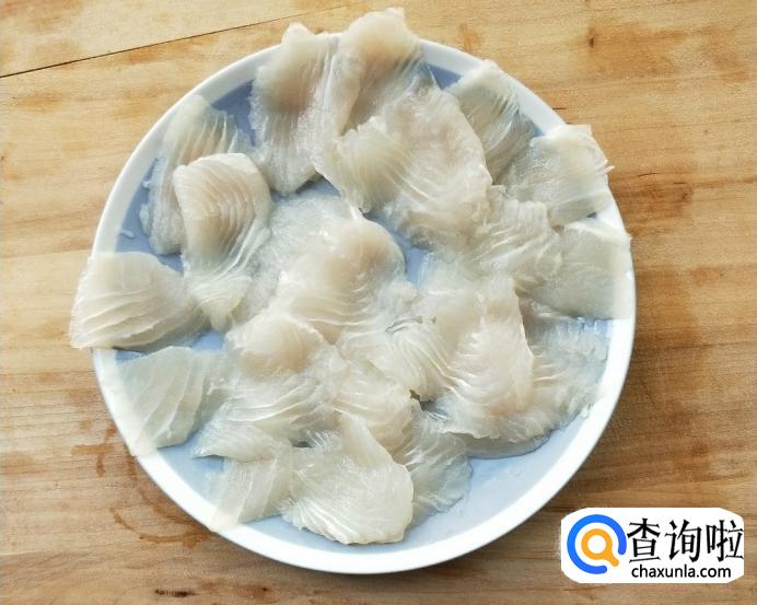 先顺着鱼的纹路切成片,放到盘里。