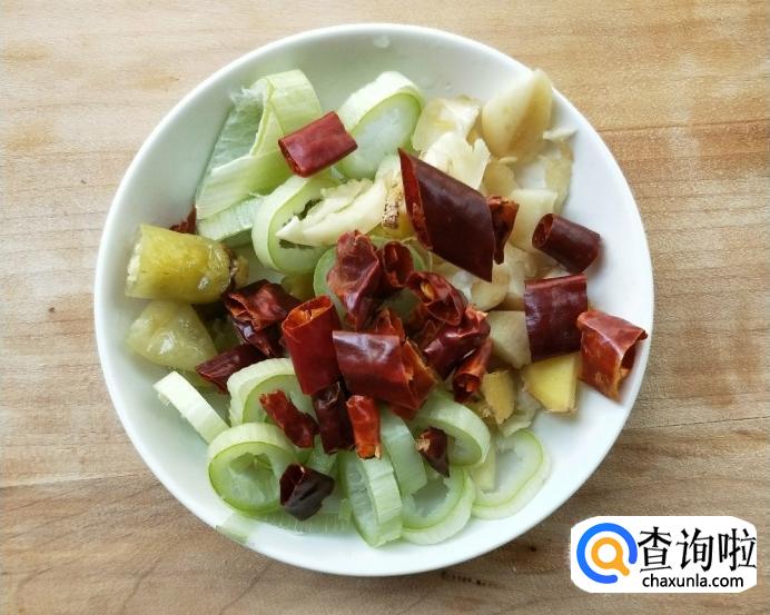 准备姜葱蒜、干辣椒、野山椒、香菜洗净切段。