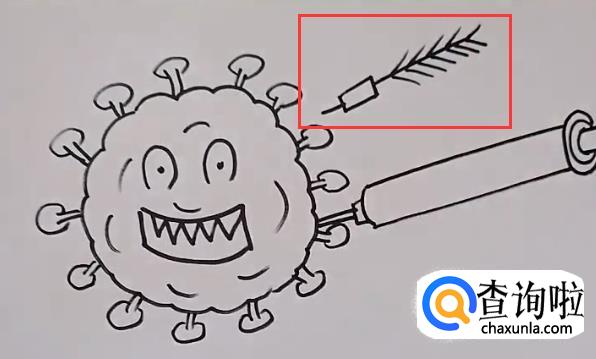 在病毒头的右边画两根箭,左边画一根箭,代表我们要快速消灭他们。