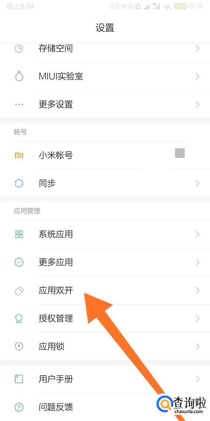 然后点击进入“应用双开”设置选项。