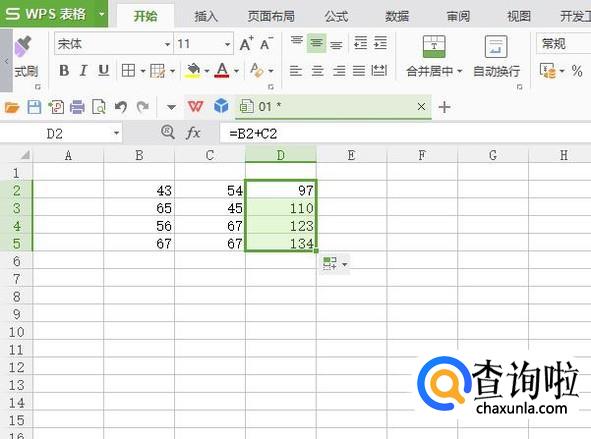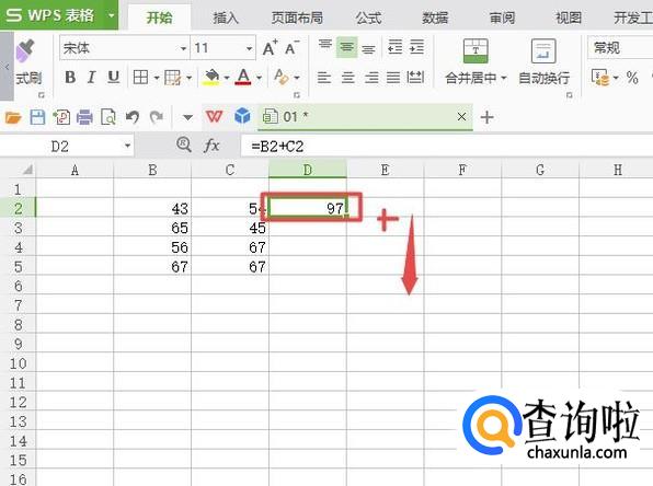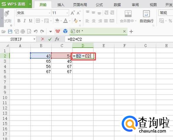 然后我们在该单元格中输入=B2+C2,然后我们按回车键;