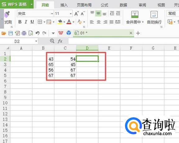 首先,我们打开我们电脑上面的wps表格,然后我们在里面输入一些数字,之后我们选中图示中的单元格;