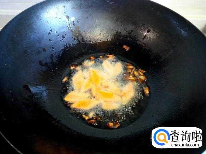 锅里放入油加热,油热后放入花椒,葱,姜,爆锅。放入胡萝卜片翻炒至变软。