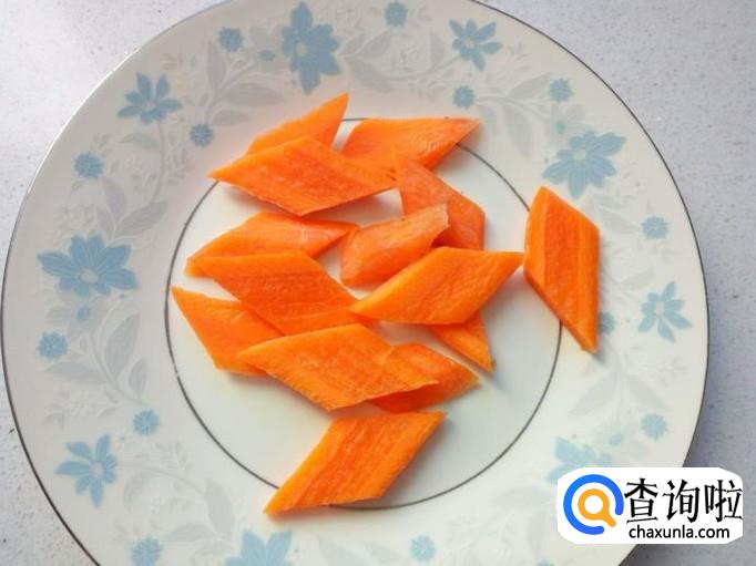 胡萝卜去皮,用水清洗干净,控干水分,切成片。切好葱,姜,备用。