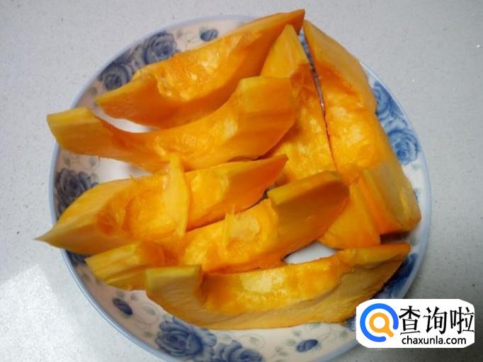 南瓜去皮去子,用水清洗干净,控干水分,切成块。