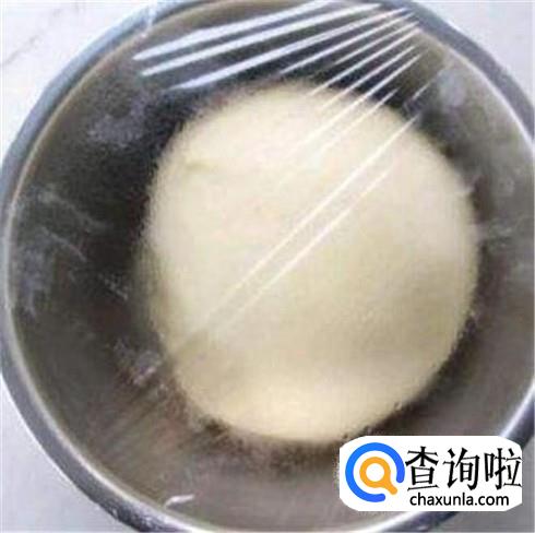 把揉好的面团盖上保鲜膜或者纱布,静置半小时,等待面团发酵。