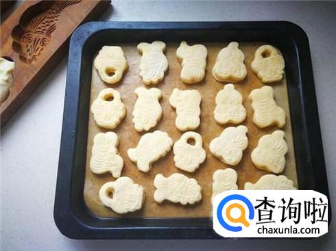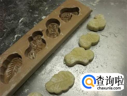 把小面团放入磨具中,按压出各种可爱的巧果形状。