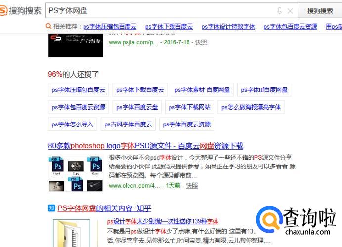 首先需要找到ps字体的文件,一般情况下我都是在搜狗搜索找到资源,然后保存在网盘。当然也可以付费下载等。这一步根据自己的情况,只要是要文件就可以了。