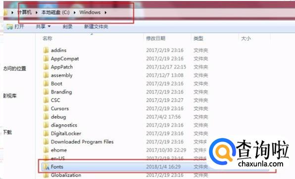 在“Windows”文件中,找到Fonts文件夹。
