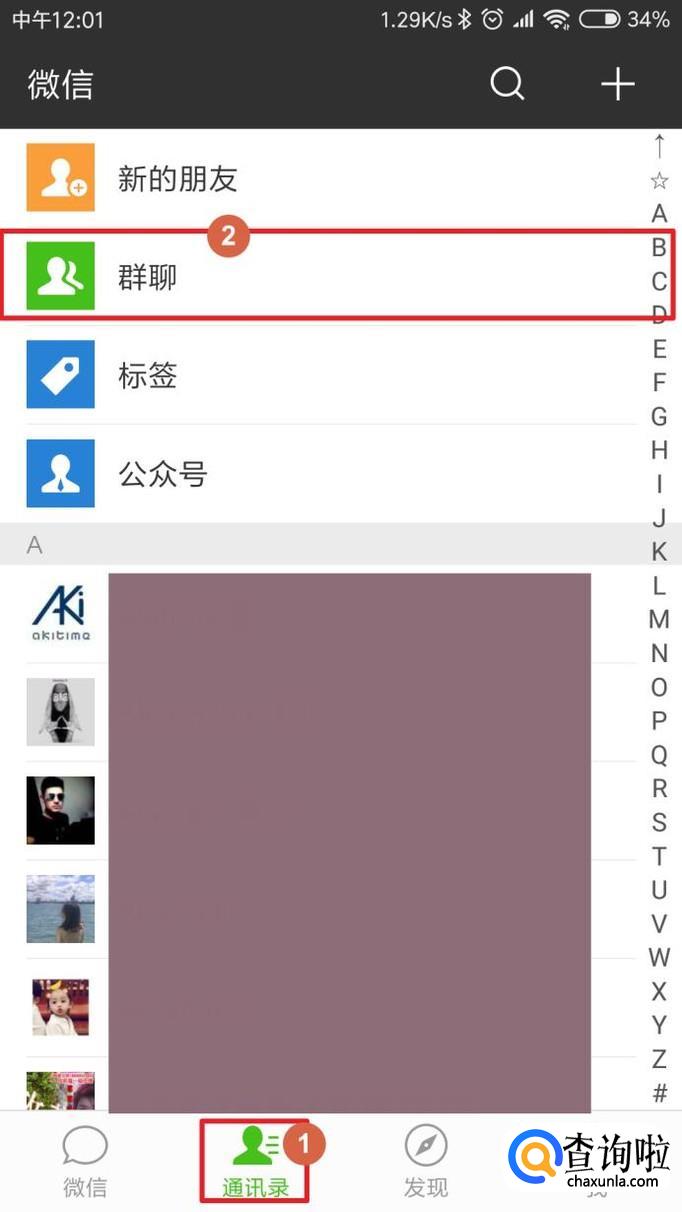 微信通讯录群聊中只能看自己建的群聊