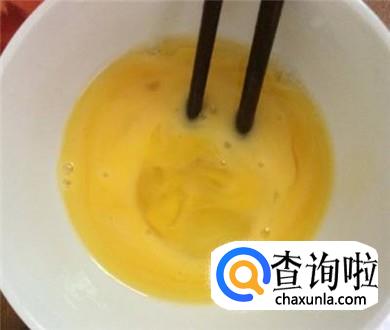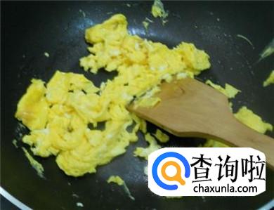 将鸡蛋打入碗中,用筷子搅散,锅中放入食用油,烧热,将鸡蛋倒入锅中,用铲子搅成碎块,盛入盘中待用。