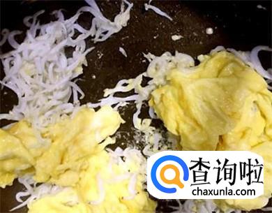 再倒入炒好的鸡蛋碎块,加入适量的盐调味,翻炒均匀,就可以出锅了,银鱼的鲜味和鸡蛋的鲜味混合在一起,特别好吃。