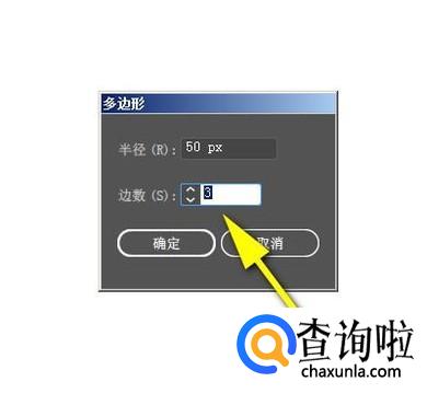 接着,鼠标在画板上点击一下,弹出一个操作面板。然后,设置半径参数,再设置“边数”为3
