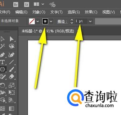 调出多边形工具后,鼠标再移到上面的属性栏,设置黑色描边,描边大小为1pt