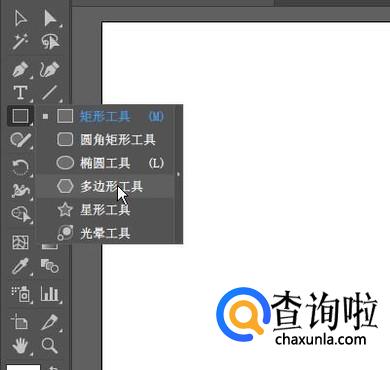 新建画板,在左侧的工具箱这里,鼠标长点住矩形工具,在弹出的列表中选择:多边形工具