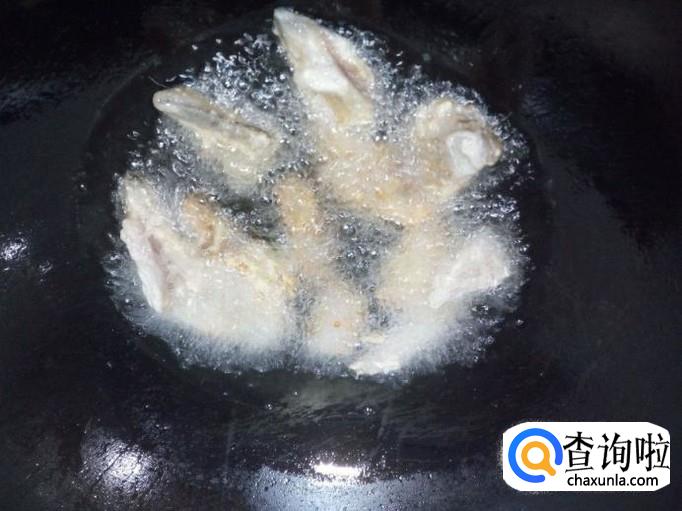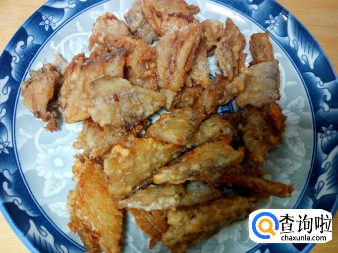 锅里放入比平时炒菜多一些的油加热,油热后放入刀鱼油炸,炸至刀鱼表面焦黄,盛出备用。