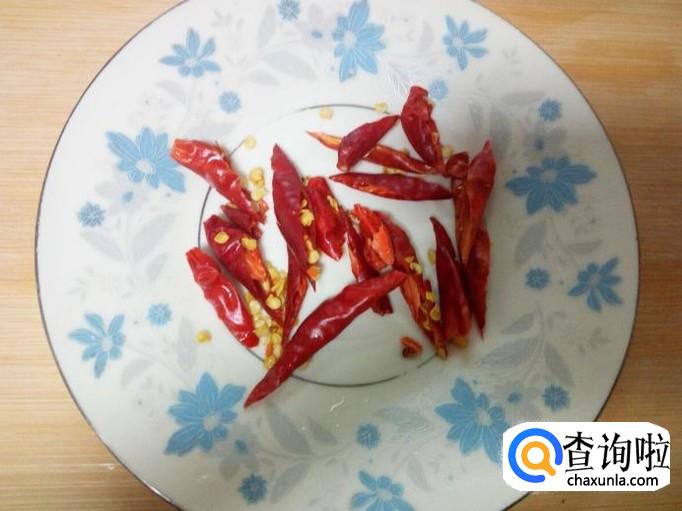 红干椒用水清洗干净,控干水分斜刀切成段。切好葱,姜,蒜备用。