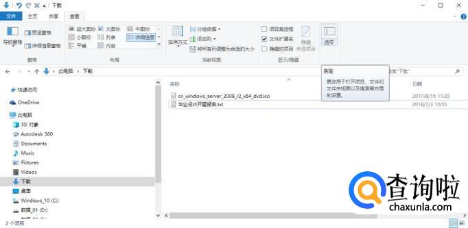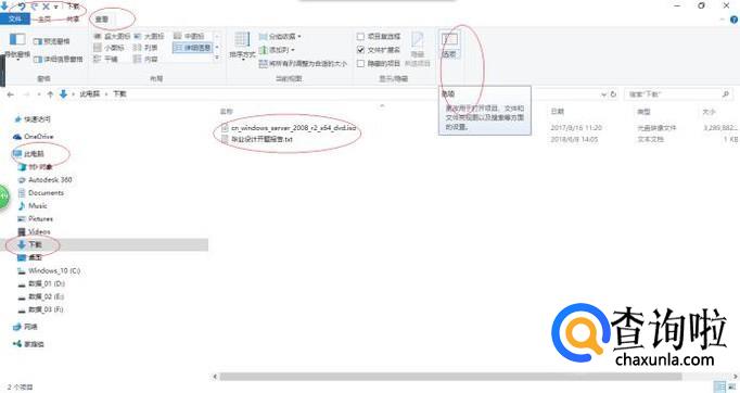 如图所示,选择"查看"标签。点击"选项"图标,用于更改打开文件、文件夹视图等方面的设置。