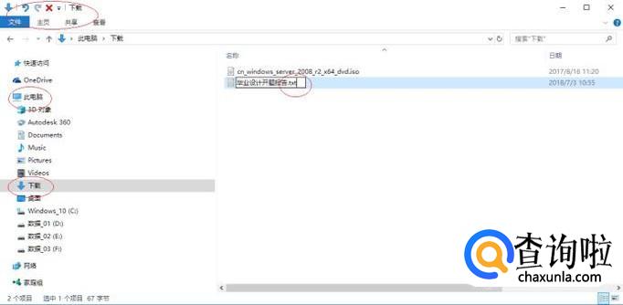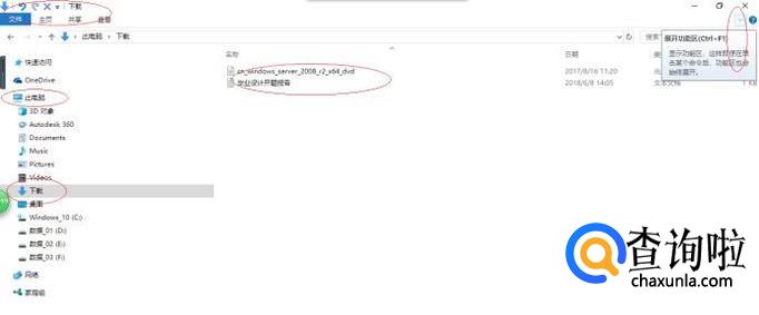 唤出"资源管理器"程序窗口,如图所示。选择"此电脑→下载"文件夹,点击功能区右侧向下箭头。