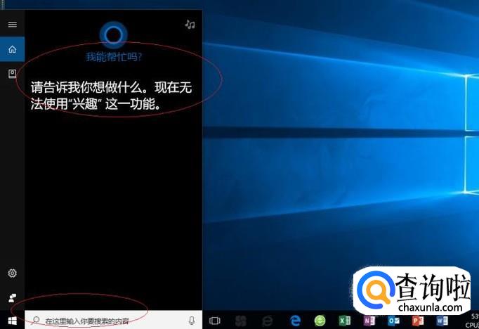 启动Windows 10操作系统,如图所示。点击任务栏搜索框,开始使用Cortana(小娜)智能语音助理。