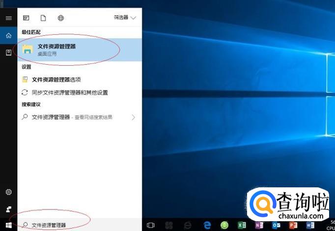 如图所示,搜索框输入"文件资源管理器"。Cortana(小娜)显示搜索结果,点击"最佳匹配→文件资源管理器"项。