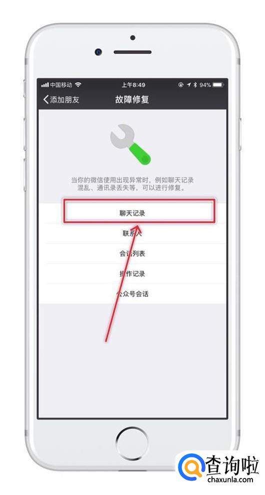 接着点击聊天记录,如下图所示。