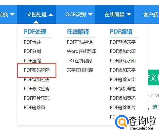 接下来,点击页面中的“文档处理-PDF密码解除”选项。