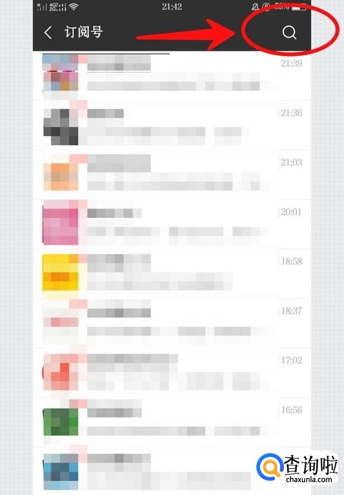 进入公众号之后,点击右上角的放大镜图标
