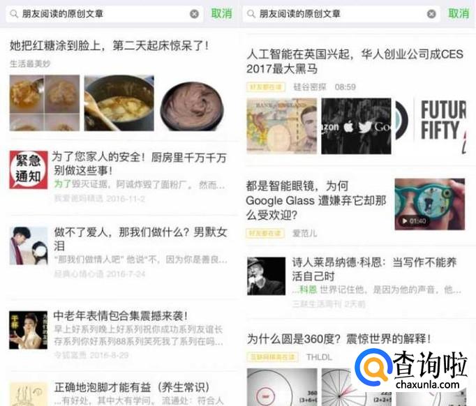 在搜索栏下搜索的“朋友阅读的原创文章”