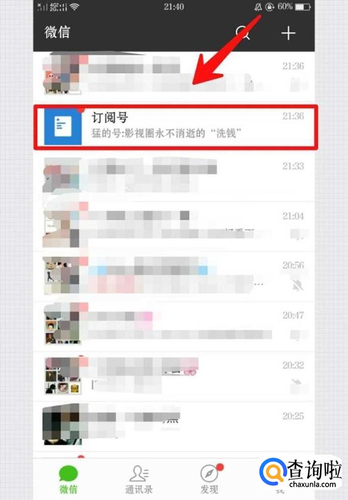 点击聊天页面的“订阅号”