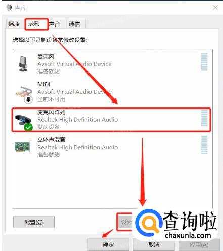 右击桌面右下角小喇叭,找到【声音】,在弹出的【声音】窗口里,将【录制】下方的麦克风设置成电脑本地可用的输入设备。