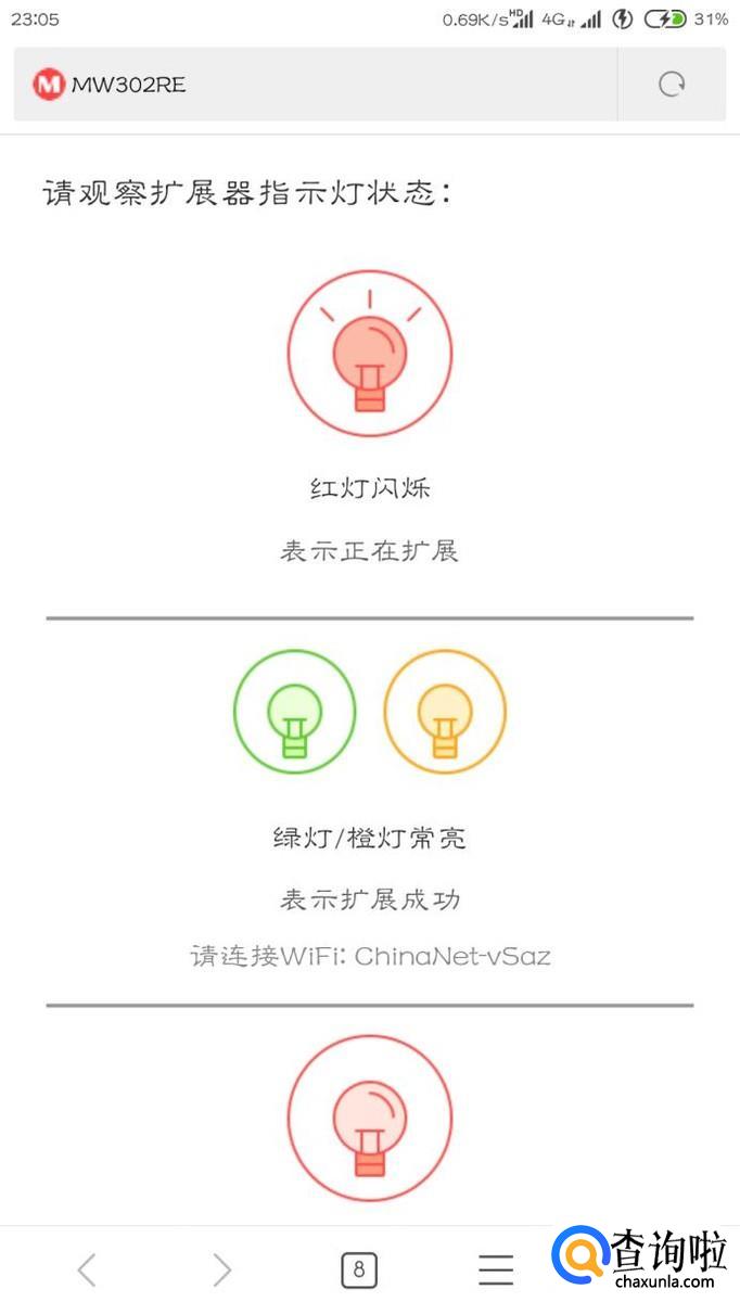 找好自家的WiFi,如果暂时没有的话就要调整扩展器的位置了,说明信号不好。