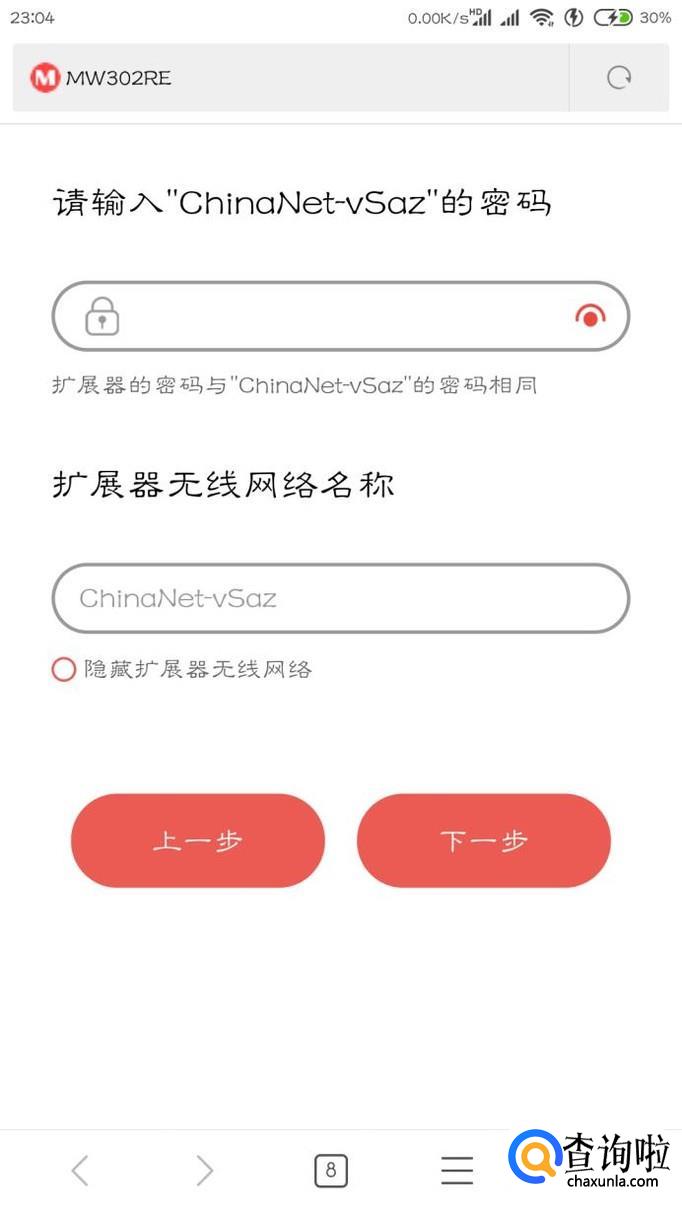 输入WiFi的密码,如果选择隐藏扩展器的话扩展器的名称将和路由器的名字设置为一样,点击下一步就开始连接了,设置完成。