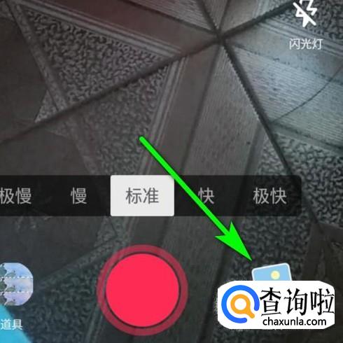 即时弹出拍摄视频的界面,看界面右下方这里,这里有一个图片的图标。