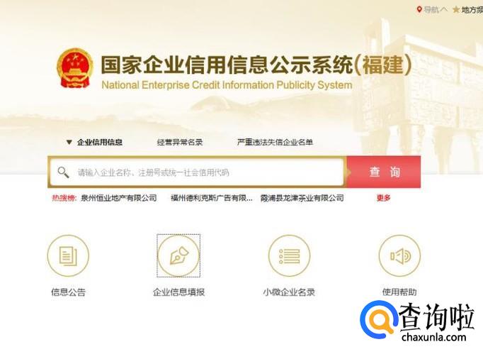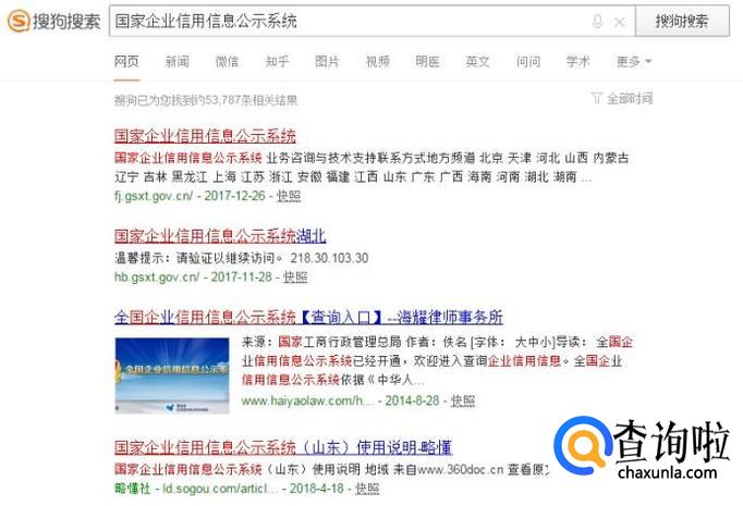 首先使用搜狗浏览器搜索国家企业信用信息公示系统,点击进入国家企业信用信息公示系统官方界面。