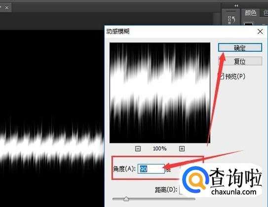 接着选择菜单栏中的“滤镜”,点击模糊中的'动感模糊",将角度设置为90度。