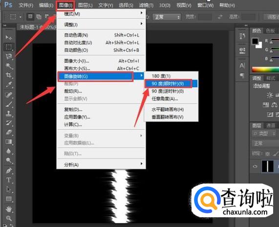 点击菜单栏中的"图像",选择图像旋转中的90度顺时针,如图所示。