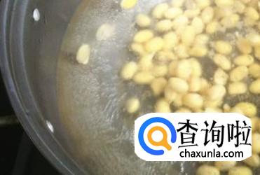 在浸泡一小时后,将沥掉水分的黄豆倒入锅中,然后再加入适量的清水,具体水量以刚刚淹没过黄豆为主。