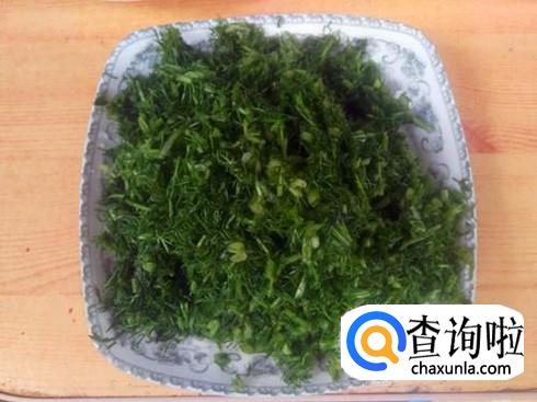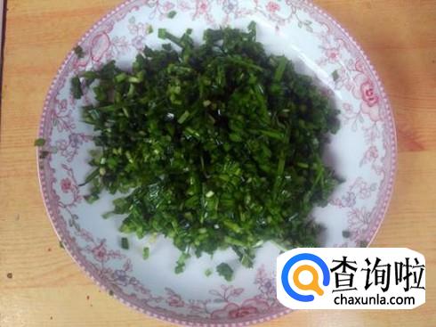 葱切成葱花,韭菜切碎,荤香也切碎。
