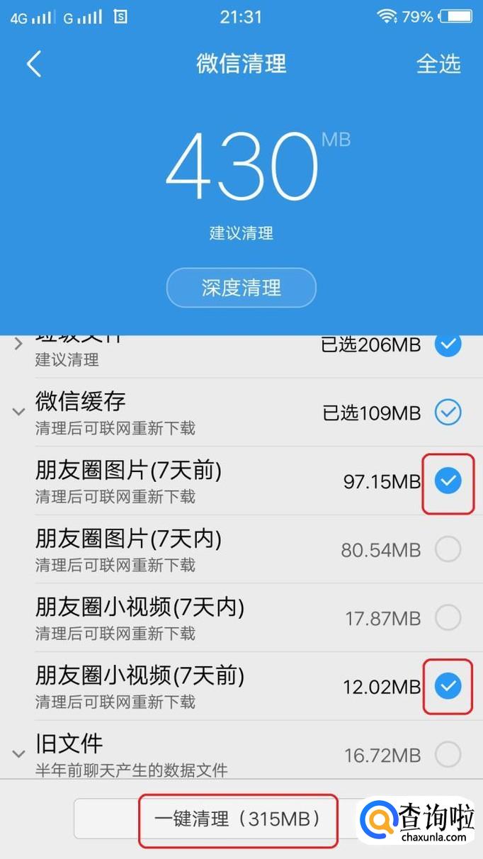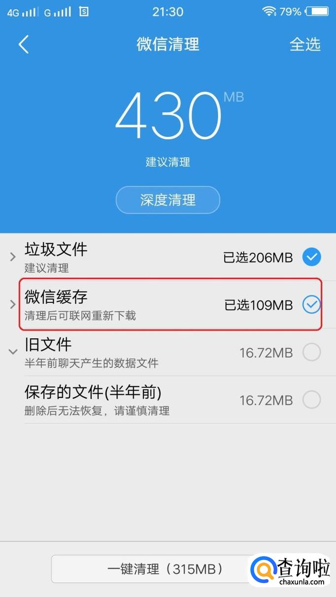 朋友圈图片主要在“微信缓存”里面,我们点击“微信缓存”,就可以看到里面包含的内容,然后我们选择朋友圈图片和视频,点击“一键清理”,就可以了。