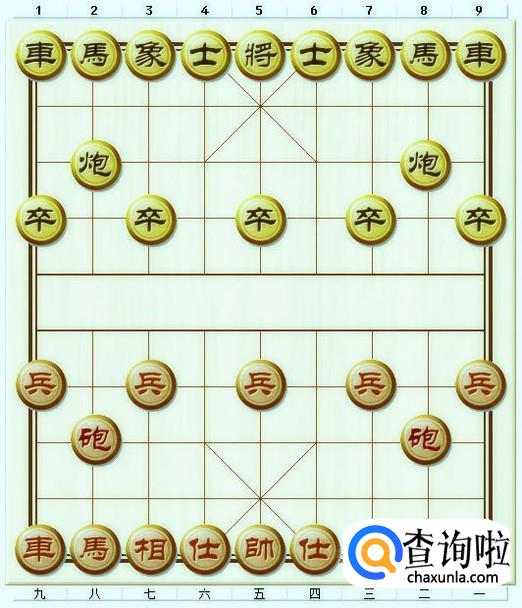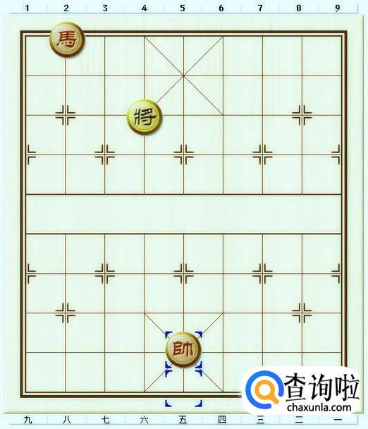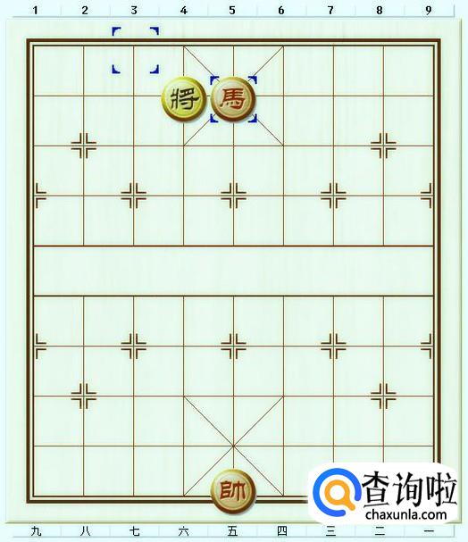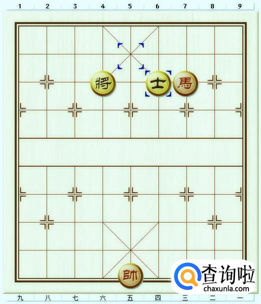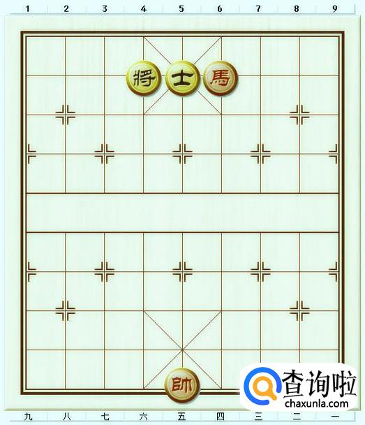 本例红马位于对方下二路横线、六路竖线交叉点位置,如图所示。红帅位于己方下一路横线、五路竖线位置,黑士位于己方下二路横线、五路竖线位置。