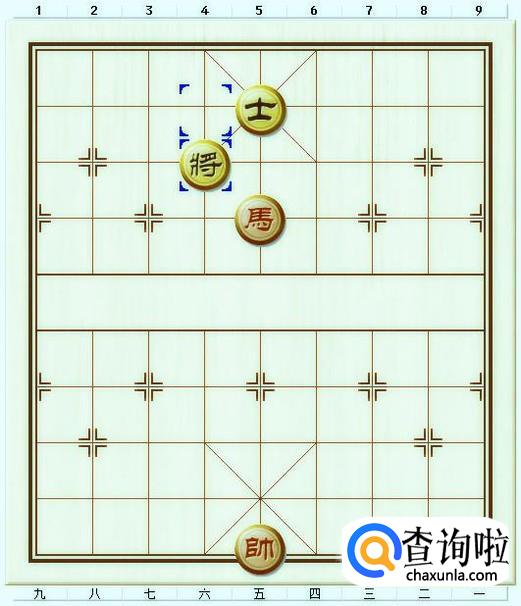 如图所示,红马三退四、黑士6退5。若黑改走将4退1,则红马四进六黑士将无处可逃。